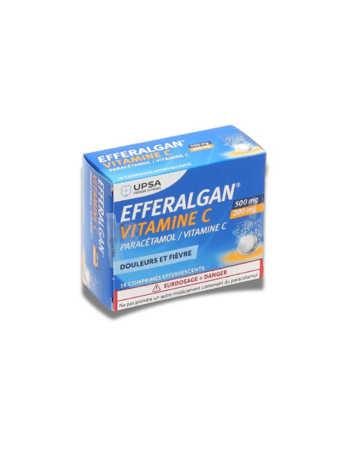 Efferalgan Vitamine C 16 comprimés effervescents. Pour douleur et fièvre.